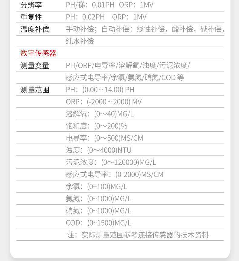 PH/锑:(-2.00~16.00)PH ORP:(-2000~2000)MV