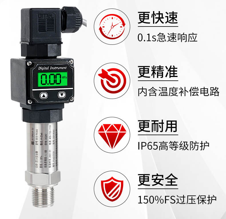 MIK-PX300数显压力变送器采用扩散硅压力芯体作为敏感元件,内置处理电路将传感器毫伏信号转换成标准电压、电流信号输出,同时带有显示功能,能够迅速、直观地显示现场压力的波动情况,减少了信号传输带来的干扰和误差,广泛应用于工业自动化设备配套以及石油、化工、冶金、电力等控制领域。